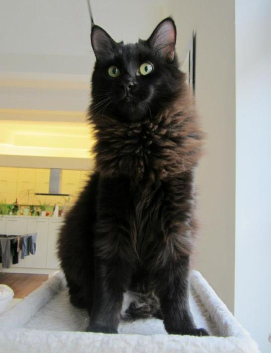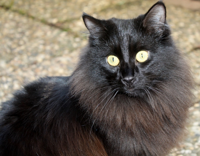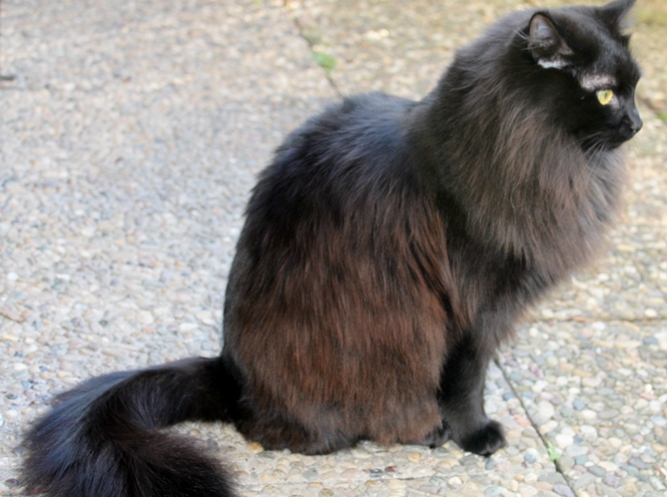 seidig weichem schwarzen Fell. Im Sommer trägt er sein Fell eher