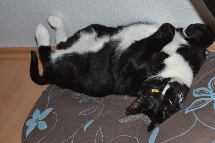 Smokey. Er lässt sich gerne auf dem Boden streicheln, ist aber kein