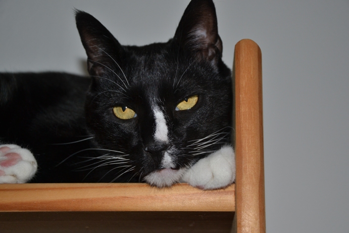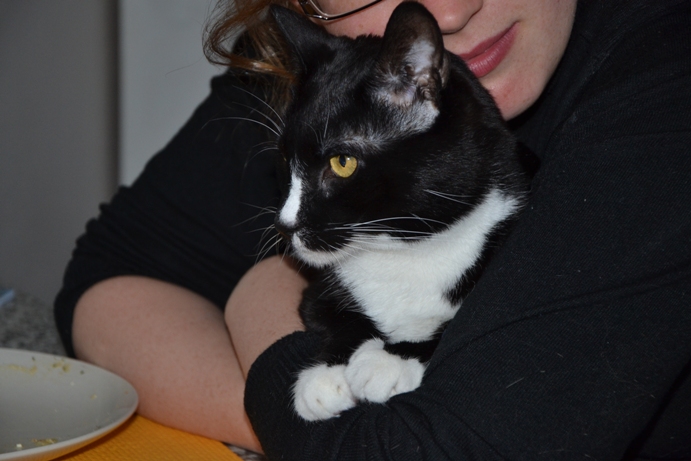 seiner aktuellen Katzenmama zu kuscheln. Außerdem hat er Papier zum