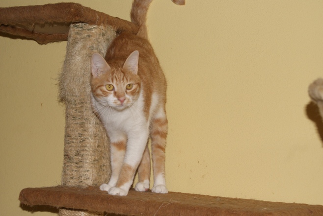 anderen Katzen zu wild sind, schaut er aus mit etwas Abstand ruhig