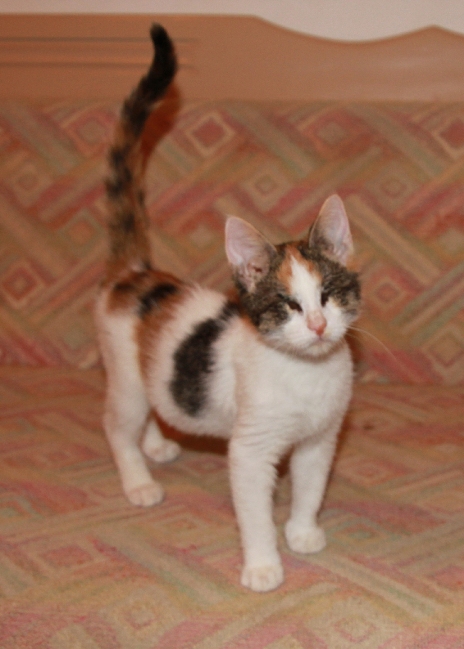 freche und sehr lebensfrohe Katze, die sich trotz ihrer Blindheit