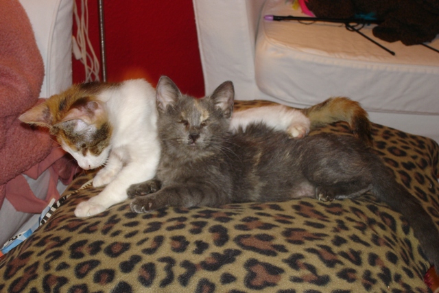 Beide lieben Pappkartons. Sie haben einen sehr schönen Korb, ziehen