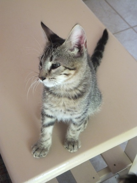 kleine Tigerkater mit den schielenden Augen, hat das große Los