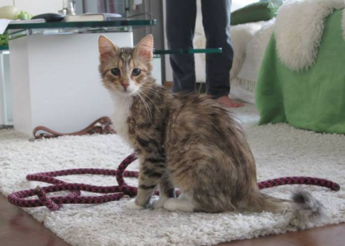 die süße Langhaarmix-Katze, wurde in Zakynthos als ganz