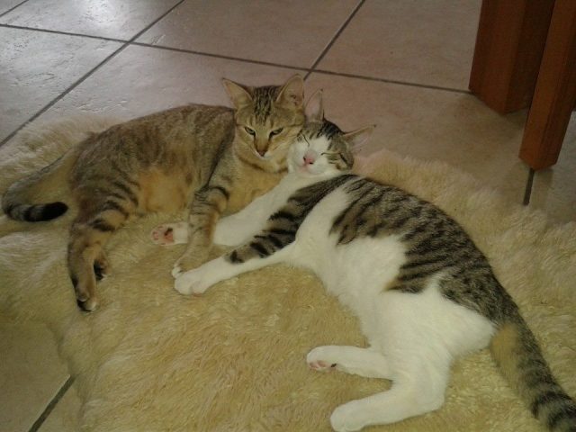 Aber das Schicksal hatte für Amelie und auch für uns noch mehr vorgesehen. Am selben Tag brachten Touristen zwei weitere frisch geborene Kätzchen (Elena und Mila) in die Praxis. Da die hilflosen, kleinen Glückskätzchen ohne eine Mama niemals überlebt hätten, wurden sie in die Obhut von Amelie gegeben, die sie sofort wie ihre eigenen Kinder annahm. Und so wurden aus einer Fellnase fünf!