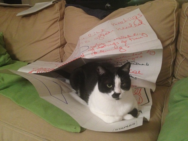 Schoß und hat immer die Pfoten auf den Büchern. Er ist rundum ein