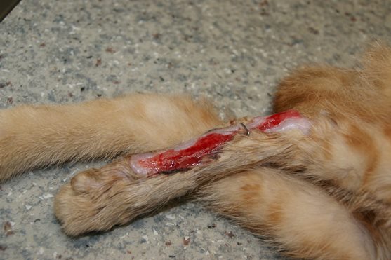 hatte durch die Bisse zwei große Abszesse, die tiefe Wunden