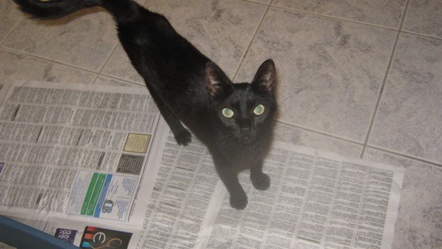 mit einem ganz süßen und vorsichtigen Miauen darauf aufmerksam, dass