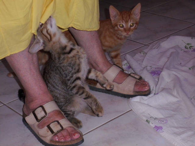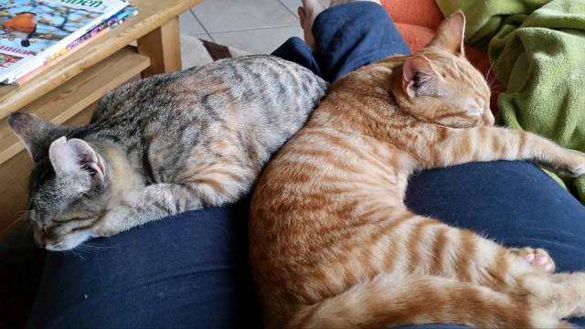 typisch verspielte und liebe Jungkatzen, die den Menschen ziemlich