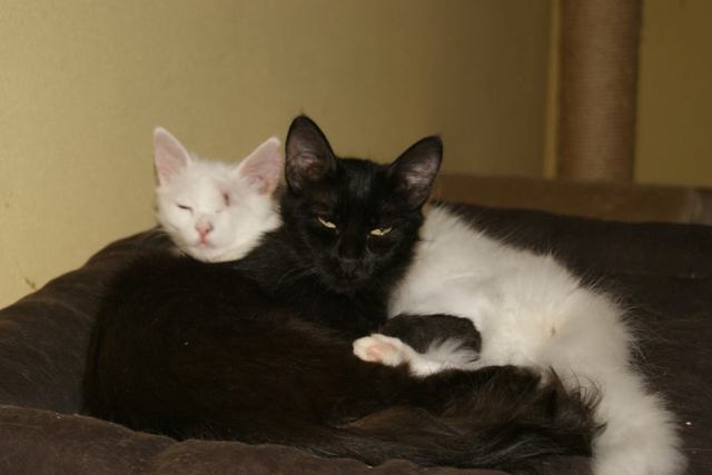 mit einem ihrer Katzenfreunde, also Thornton, Spangle oder Nousha.