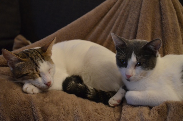 beiden springen einem auf den Schoss, kuscheln sich ein und