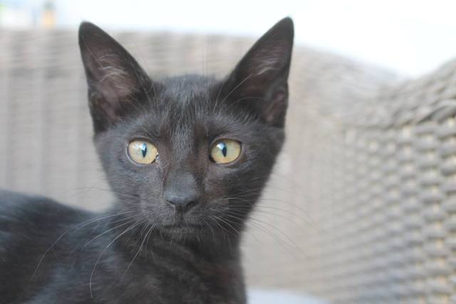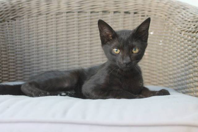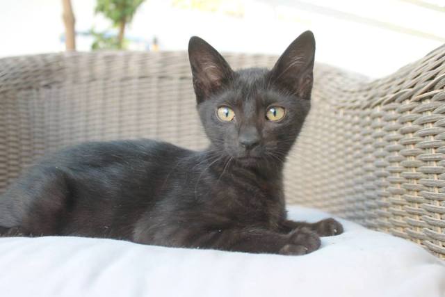 Diese süße kleine schwarze Schönheit ist Katzenprinzessin Ostria. Wie genau