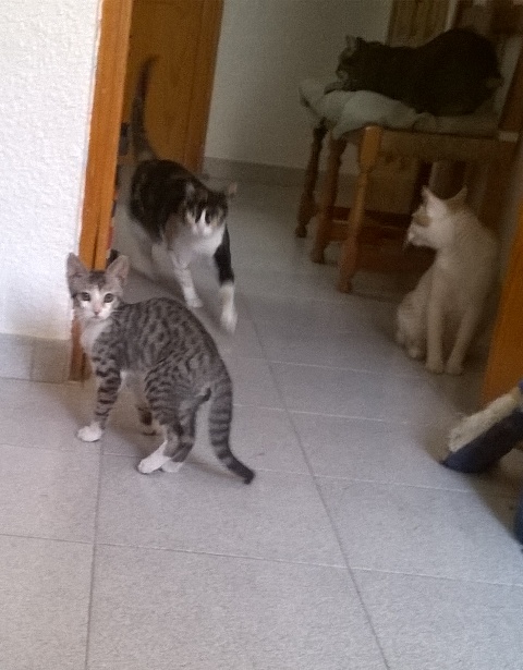 sich prima mit anderen Katzen und auch Hunden und zeigt seinem