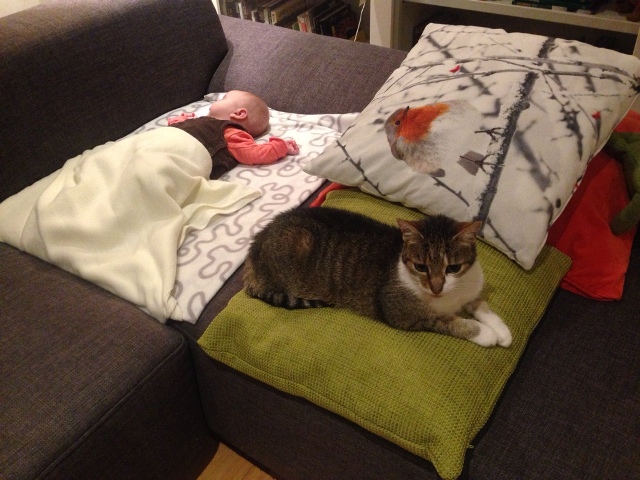 Wir haben ein kleines Baby in der Familie, mit dem Fritzi sehr