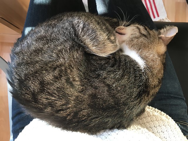 Lebens freut und jede Gelegenheit nutzt mir auf den Schoß zu