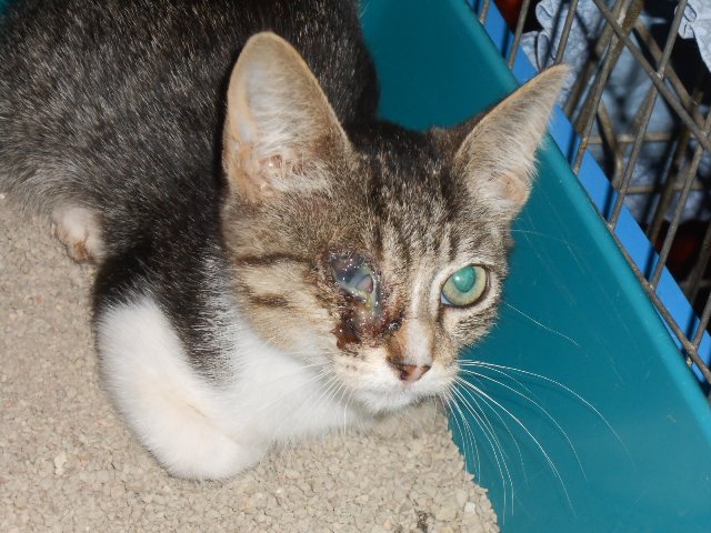 entzündeten Auge. Sie wurde sofort eingefangen, tierärztlich