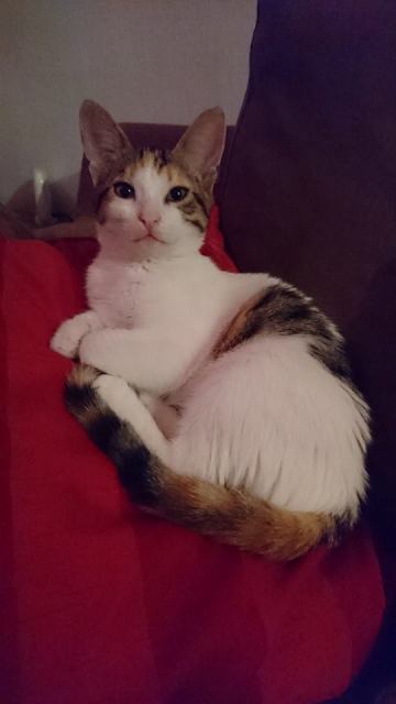 liebe kleine Katzendame, die sehr gut an den Menschen gewöhnt ist
