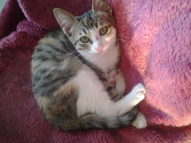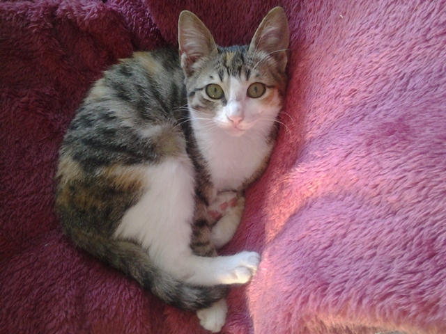 Die kleine 3-farbige Glückskatze Mimosa - auch liebevoll Mimi