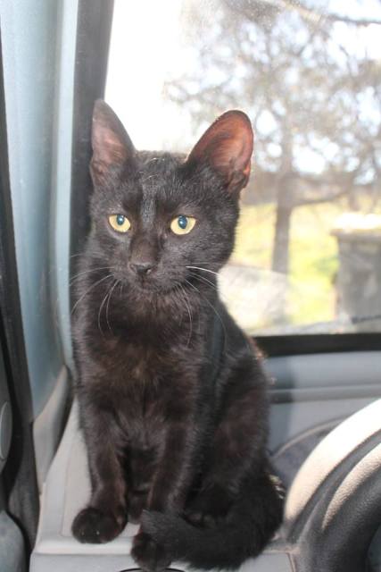 Misty, die kleine schwarze Schönheit, ist ein Flughafenkind aus Santorini.