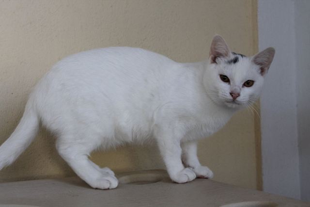 Der kleine Schneeprinz mit seinen bernsteinfarbigen Augen hat ein