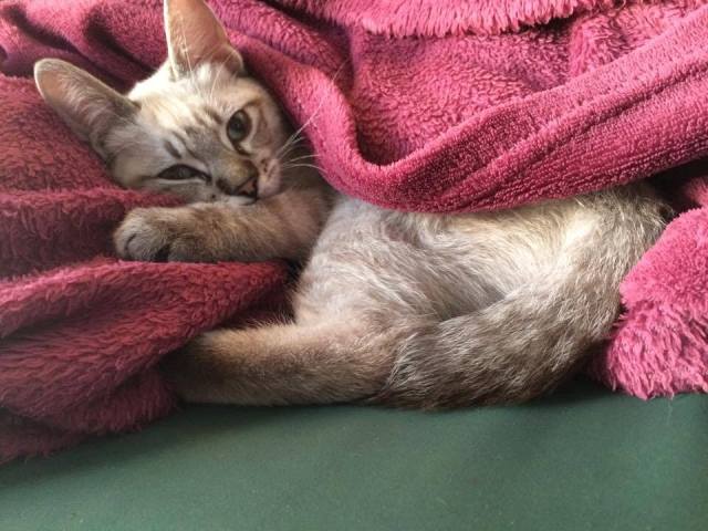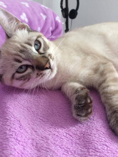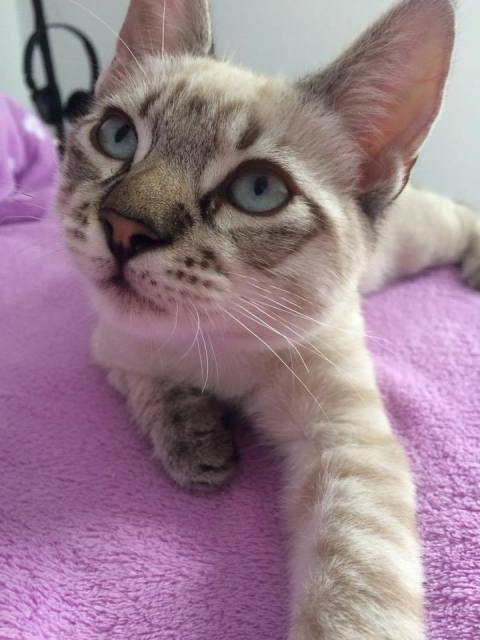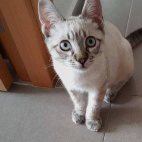 Der wunderhübsche kleine Siam-Mix Costa mit den blauen Augen wurde