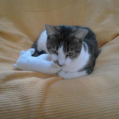 dann holt er sich eben ein Paar Socken und spielt damit Tatzenball.