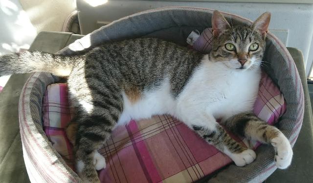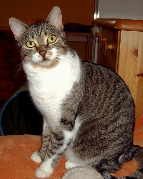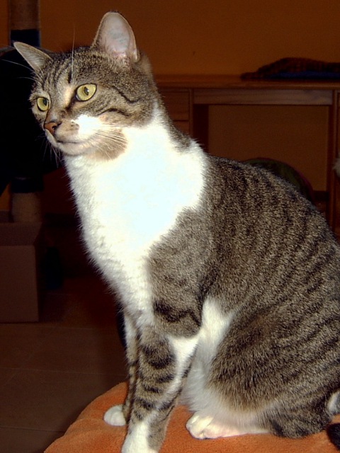bin‘s, Boubou! Ein Jahr alt, grau getigert mit weißen Flecken und