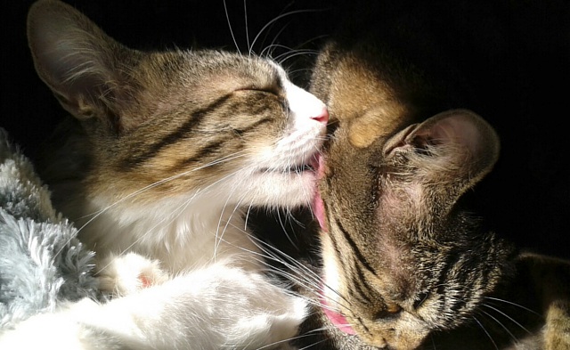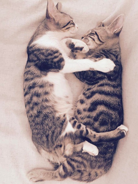liegen sie als Knäuel zusammen, schmusen und putzen sich. Sie lieben