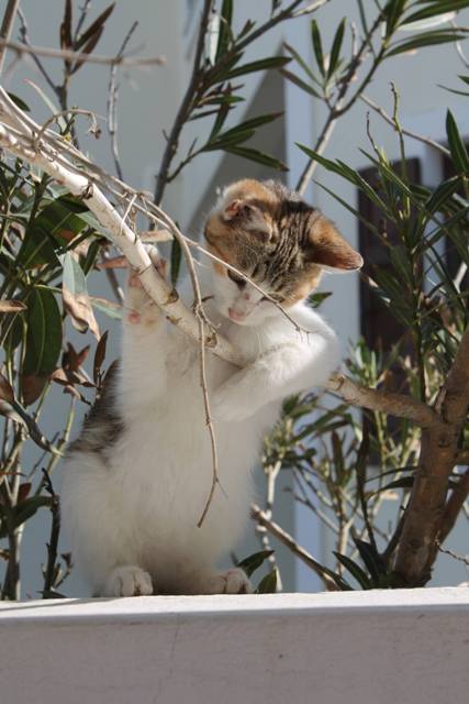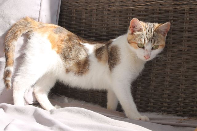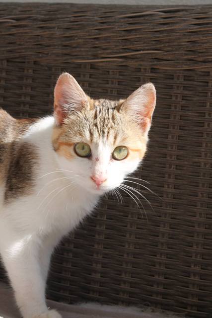 Klettermäxchen Loulou wurde von unserer befreundeten Tierschützerin Christina auf Santorini in einer Streunerkolonie aufgesammelt, die leider sehr nahe an einer stark befahrenen Straße lag - da war die kleine Glückskatze ca. 3 Monate alt. Seither lebt die kleine Dame in einer privaten Pflegestelle und entwickelt sich zum typischen glücklichen und unbeschwerten Katzenteenager.