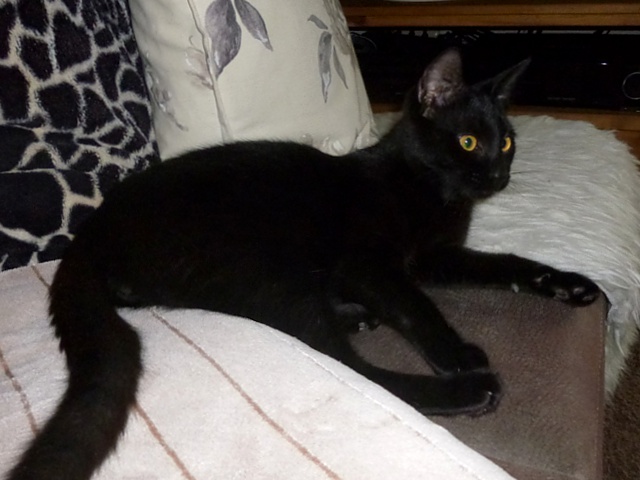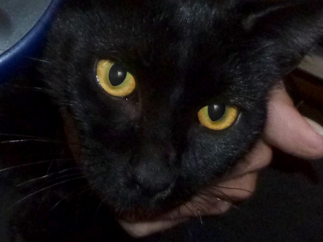 Shadow ist ein wunderschöner Kater mit glänzendem schwarzen Fell und