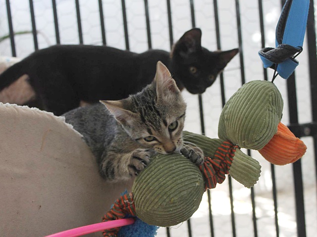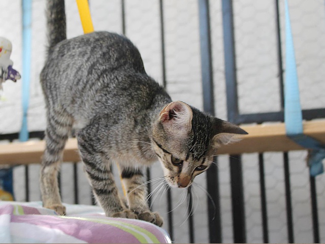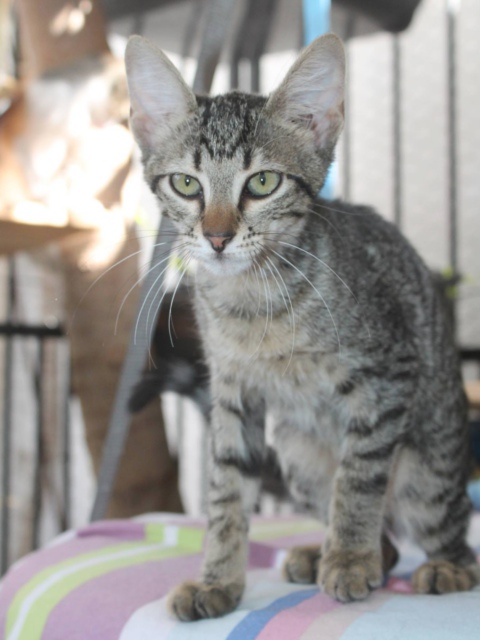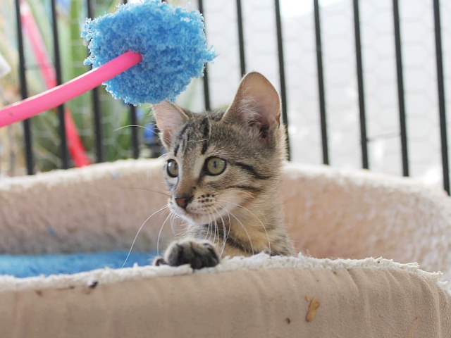 ein mutterloses Babykätzchen (Asteri) am Flughafen eingesammelt und sie