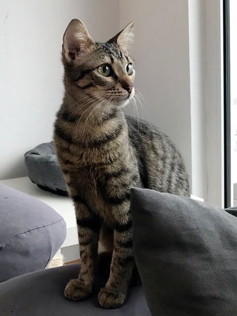 schmal und erinnert an eine ägyptische Katze. Sie ist zwar auch sehr