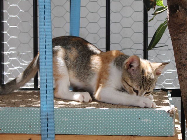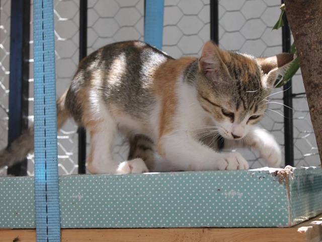 ein mutterloses Babykätzchen (Asteri) am Flughafen eingesammelt und sie