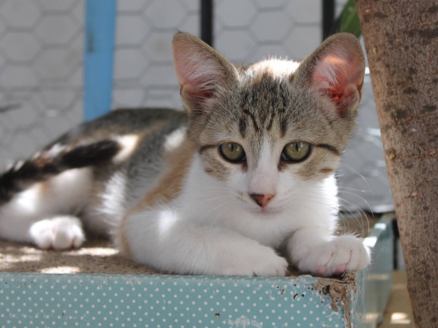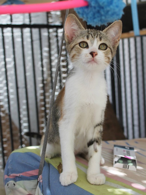 eine muntere und hübsche kleine Katze, die für ihr Leben gerne mit