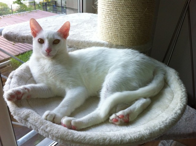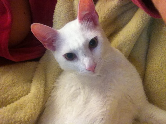 Der kleine Engel Quiyo ist das schneeweiße kleine Katerchen unserer