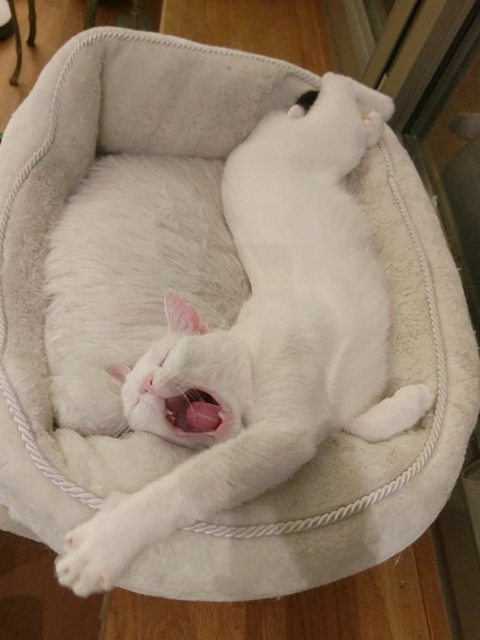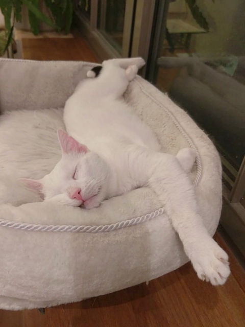 Katzenbett, er liebt seinen Spielball und die Federangel, doch er
