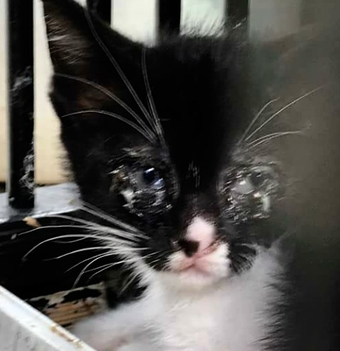 und hatte stark verklebte Augen, weshalb sie dringend behandelt