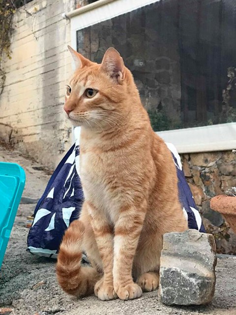 an den ganzen Straßenkatzen, die täglich zum Fressen kommen. Deshalb