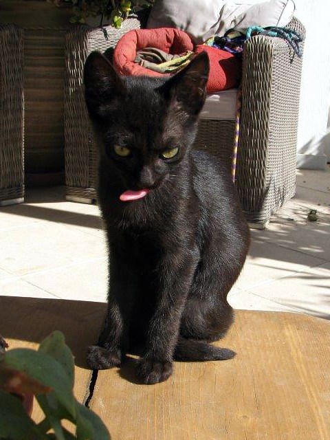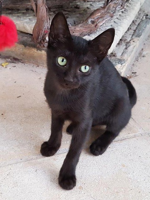 Christina im Juli in Perissa eingesammelt hat. Domino ist ihr aufgefallen, weil sie jeden Tag