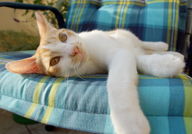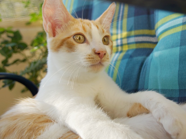 Er spielt sehr gerne Ball, am liebsten mit seinem Katerkumpel Blacky.