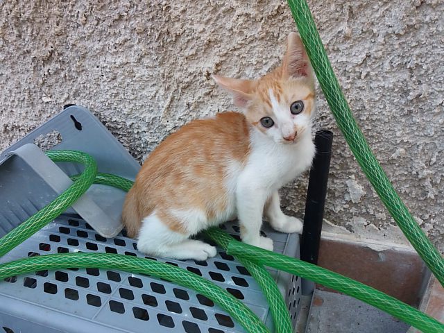 erster dabei. Der kleine Katermann ist neugierig und unheimlich