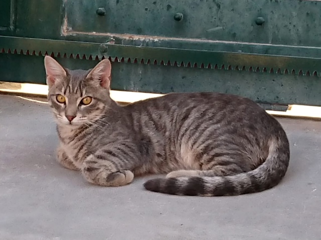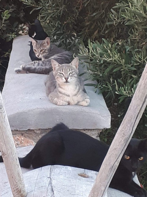 auf einem Parkplatz in Oia von einer Tierschützerin gerettet und