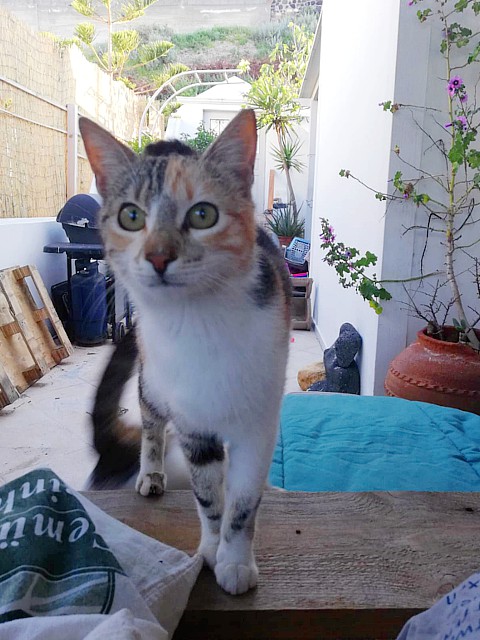 Tierschützerin Christina auf Santorini auf. Sie lebte vorher auf der