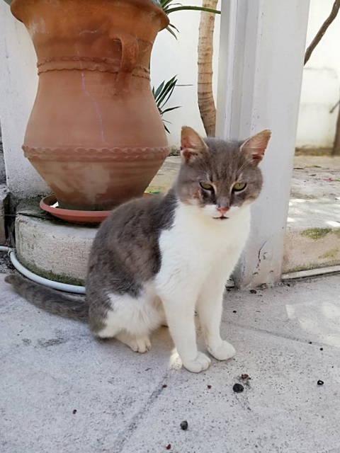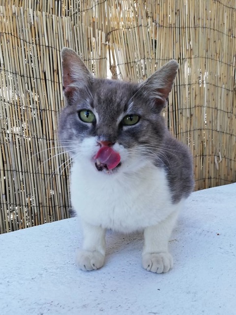 schon drei Jahre alt ist und auf Santorini als Freigänger gelebt hat