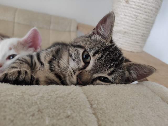 sie ist super sozial und andere Katzen geben ihr Sicherheit. Sie