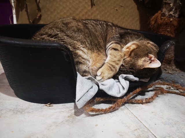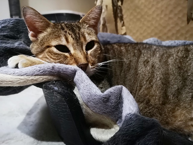 ruhig, schläft viel und ist immer noch ein wenig dick. Sandy mag es