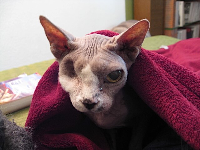 Gismo ist ein 17-jähriger Nacktkatergreis, dessen Besitzerin vor