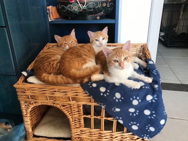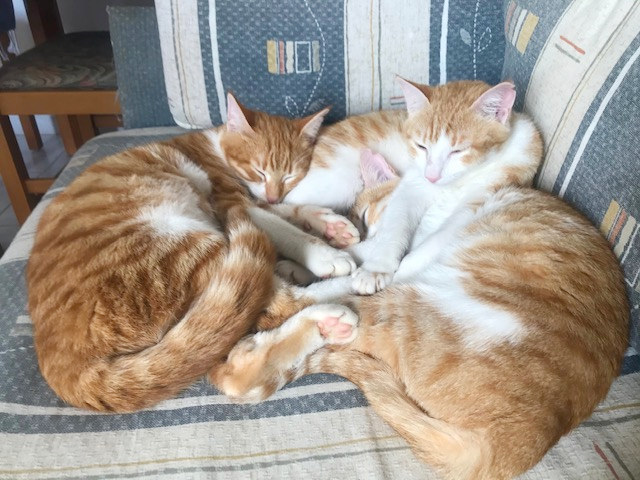 alle drei sind süße, anhängliche Katzenkinder, die gerne auf dem