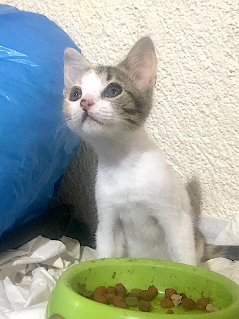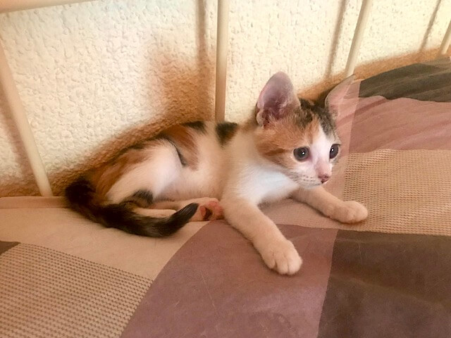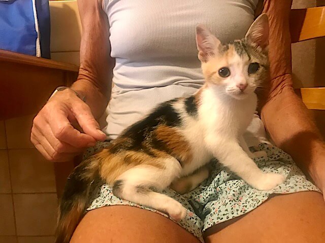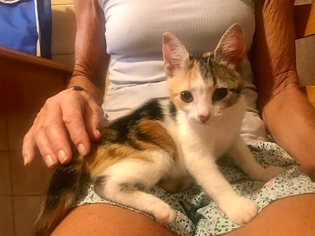 Pflegestelle gewöhnt hatte. Mit einer der größeren Katzen haben sich