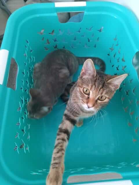 Bella und Seline sind zusammen mit zwei weiteren Geschwistern in Santorini in einem Privathaushalt zur Welt gekommen und aufgewachsen. Aufgrund privater Probleme mussten die Kätzchen im August 2021 plötzlich ganz schnell weg.